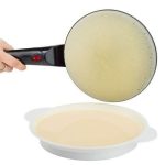 Включена е специална тавичка за смес, която улеснява процеса на обръщане. Просто потопете горещия тиган в тавичката със сместа и веднага ще получите перфектно равномерна палачинка.
