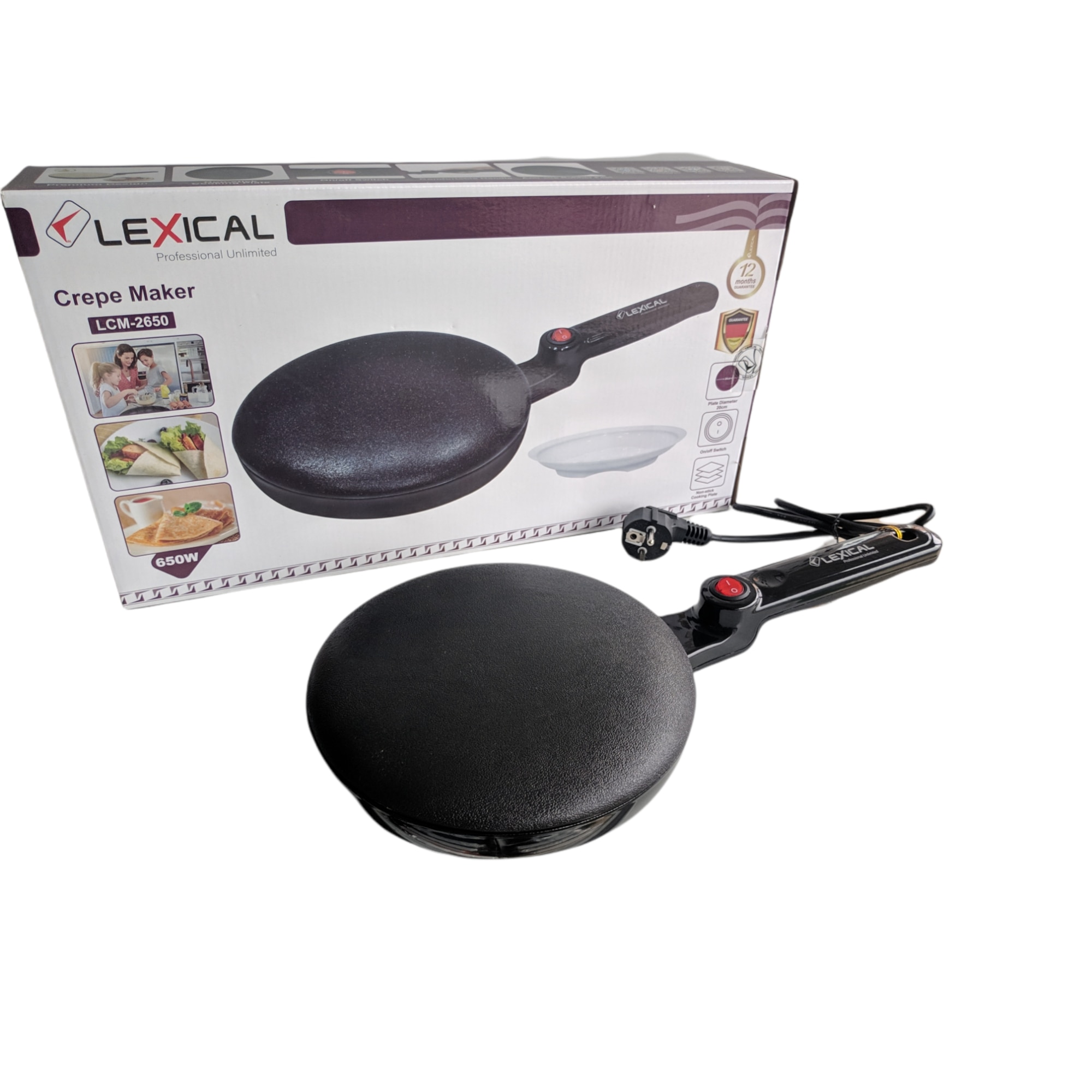 Електрически тиган за палачинки Lexical съчетава мощността от 650W и иновативно незалепващо покритие, което гарантира лесно приготвяне на вкусни палачинки без залепване.