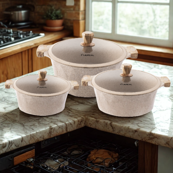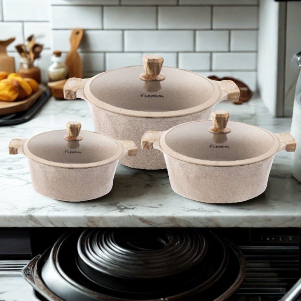 Открийте удоволствието от готвенето с висококачествения комплект тенджери Lexical PEARL SERIES. Създаден с внимание към всеки детайл, този комплект съчетава иновативна технология и премиум материали за перфектен резултат при всяко ястие. Независимо дали приготвяте класически супи, яхнии, паста или модерна кухня, тенджерите от серията PEARL ще ви осигурят равномерно загряване, здравина и удобство, съчетани с елегантен дизайн.