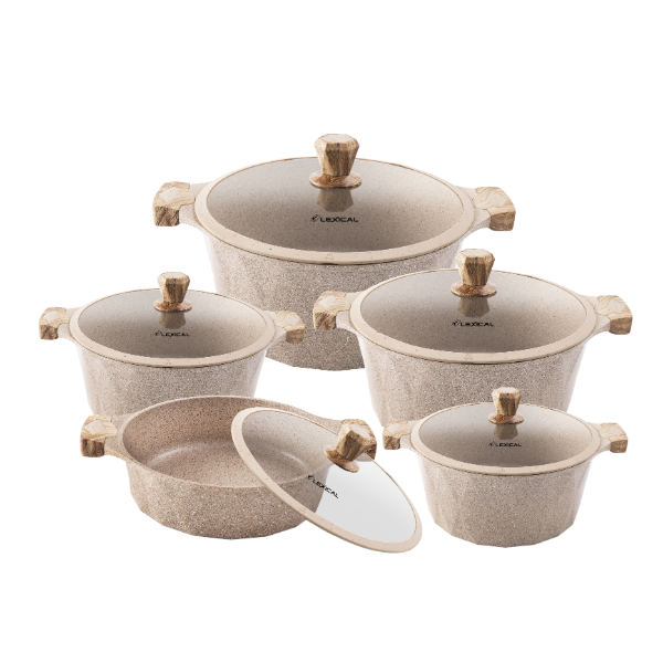 Комплектът Lexical Pearl Series DCC-55710-3 представлява изключителна колекция от 10 части, проектирана за ценители на кулинарното изкуство. Със своето премиум гранитно покритие и внимание към детайла, този комплект е синоним на дълготрайност, елегантност и удобство.