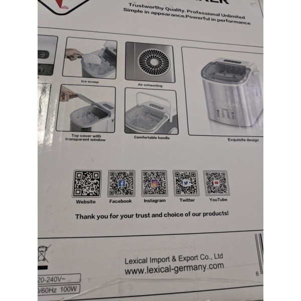 Съвременният и компактен дизайн на този ледогенератор позволява неговото разполагане във всяко пространство – било то у дома или в офиса. Насладете се на стил и функционалност с този уред, осигуряващ студени напитки по всяко време.