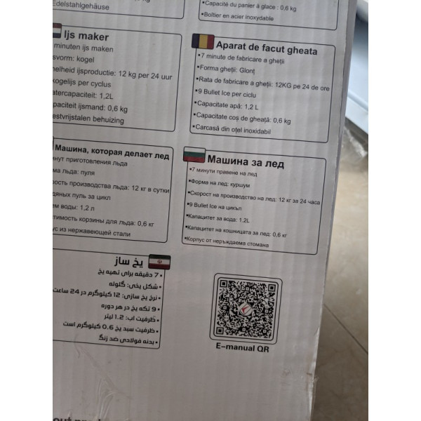 Този ледогенератор е отличен избор за всяко домакинство, офис или малко заведение. Способен е да произведе до 12 кг лед на ден, осигурявайки ви винаги свежи и охладени напитки. Стилен и компактен, уредът е удобен за употреба и лесен за поддръжка. Благодарение на мощния и тих компресор, получавате готов лед в рамките на само 7 минути.