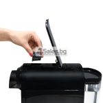 Машината разполага с автоматичен дозатор за капсули, съвместим с най-популярните марки на пазара. Вградената помпа осигурява оптимално налягане от 20 бара за перфектно еспресо, а резервоарът за вода е достатъчен за няколко чаши преди следващото пълнене. Автоматичното изключване допринася за енергийната ефективност и безопасност.