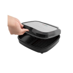 Уредът разполага с функция за отваряне на плочата до 180 градуса, което му позволява да се използва както за печене, така и за скара. Интелигентната конструкция включва зони за пържени яйца и скара, осигуряващи перфектни кулинарни резултати.