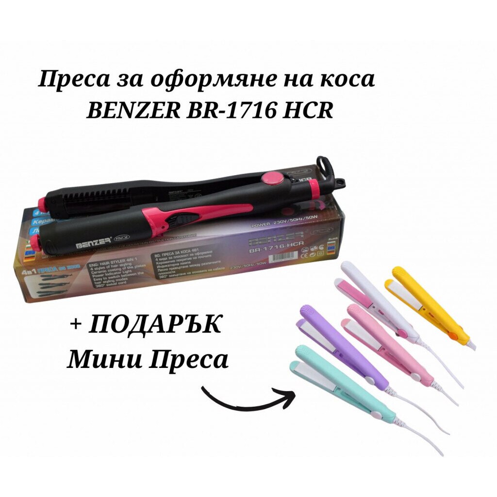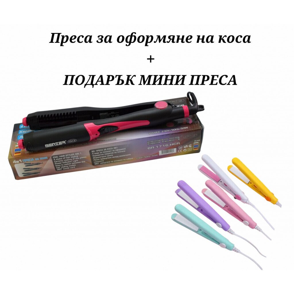 Пресата Benzer 4 в 1 предлага лесно изправяне, начупване и оформяне на косата. С четирите лесно сменяеми приставки, можете да постигнете различни стилове всеки ден. Керамичното покритие осигурява защита на косата и позволява честа употреба.
